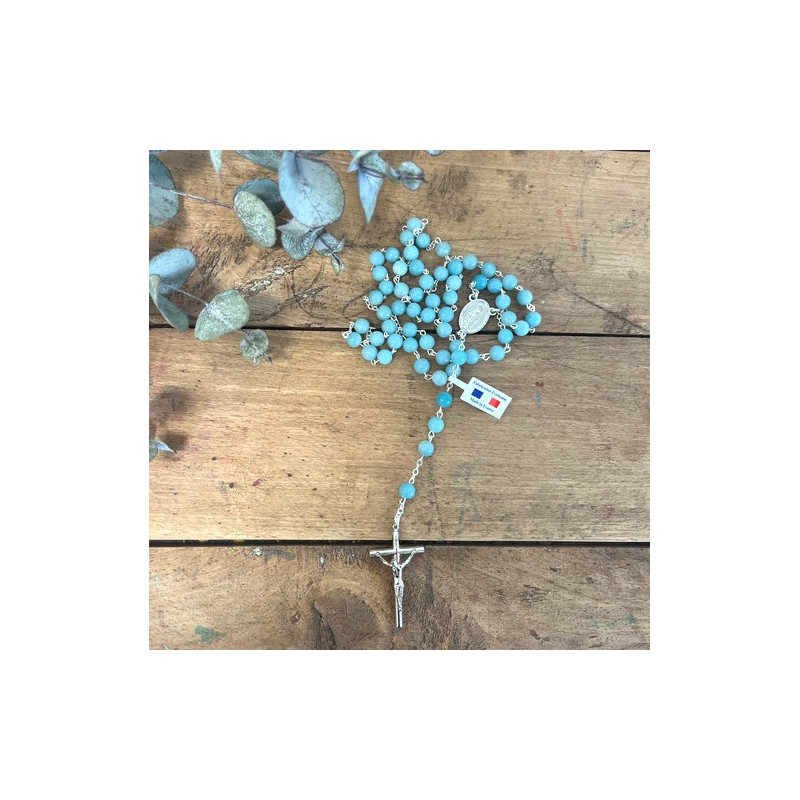 Découvrez notre chapelet en amazonite, une pierre reconnue pour ses propriétés apaisantes et équilibrantes. Composé de perles naturelles soigneusement sélectionnées, ce chapelet peut être utilisé comme objet de prière, bijou spirituel.
