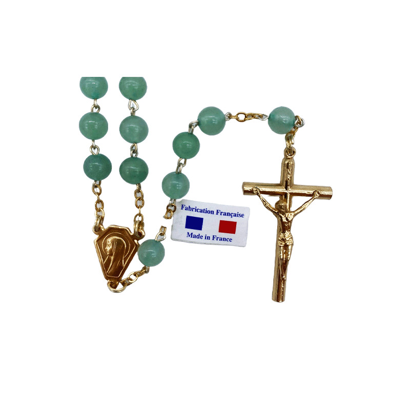 Ce superbe chapelet est monté sur chaine et fil doré. Les perles sont en aventurine véritable. Le diamètre des perles est de 6mm et sont de forme ronde.