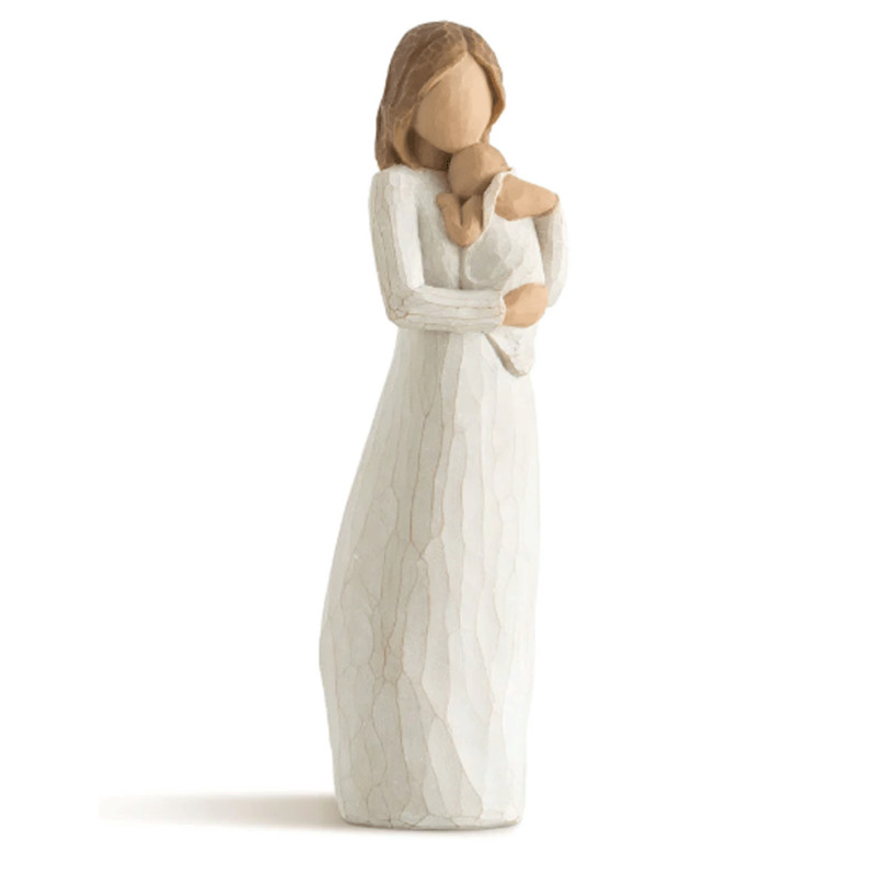 La figurine « Angel of Mine » de la collection Willow Tree, conçue par l'artiste Susan Lordi, incarne la tendresse et la profondeur du lien entre une mère et son enfant. Cette sculpture représente une mère debout, vêtue d'une robe crème, tenant son enfant dans une étreinte chaleureuse, symbolisant l'amour inconditionnel et le lien éternel.