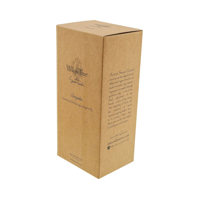 La figurine « Chrysalis » de la collection Willow Tree, conçue par l'artiste Susan Lordi, incarne la métamorphose et le passage à l'indépendance. Cette sculpture représente deux femmes en robes crème, l'une debout derrière l'autre, l'enlaçant tendrement, symbolisant le lien profond entre une mère et sa fille adolescente.