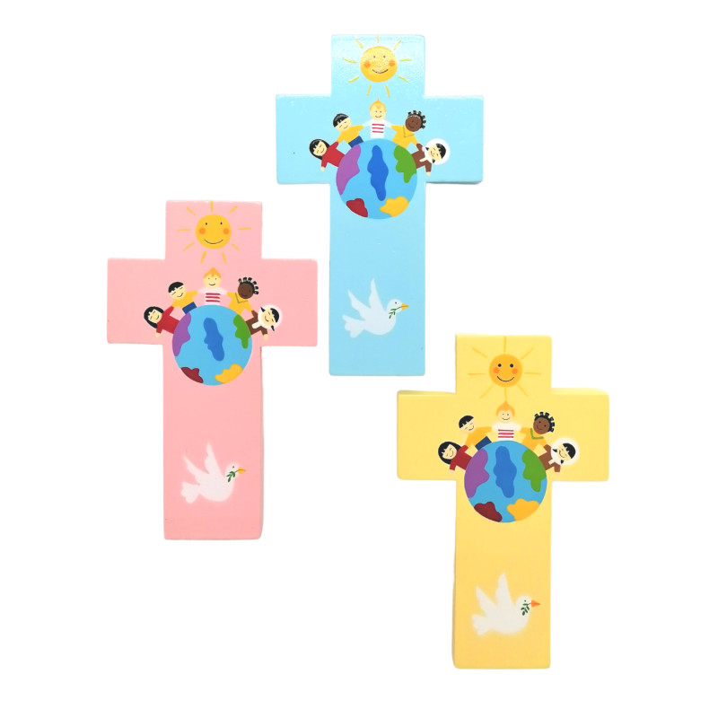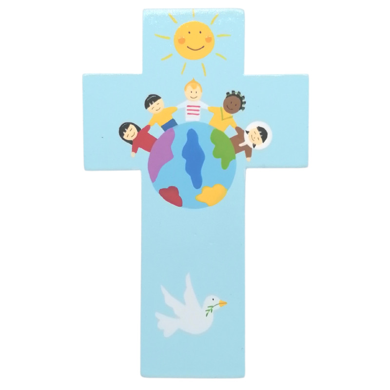 Célébrez la diversité et l'harmonie avec la Croix du Monde en bois, une pièce de décoration remplie de signification et d'espoir. Cette croix colorée est décorée avec des représentations joyeuses d'enfants des cinq continents, symbolisant l'unité mondiale et la fraternité. En son centre, notre planète Terre, rappelant à tous la responsabilité commune de prendre soin de notre maison commune.