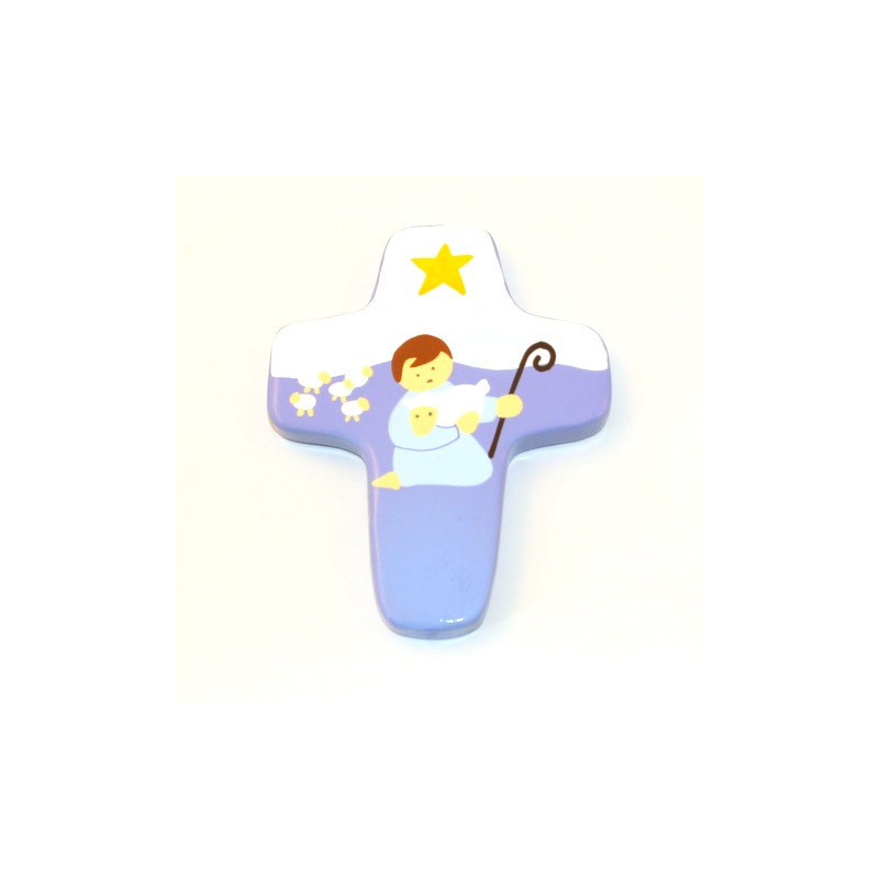 Cette croix murale représente un berger et ses moutons devant l'étoile. Cette croix rappelle la naissance du Divin enfant et l’importance de la foi dès le plus jeune âge.