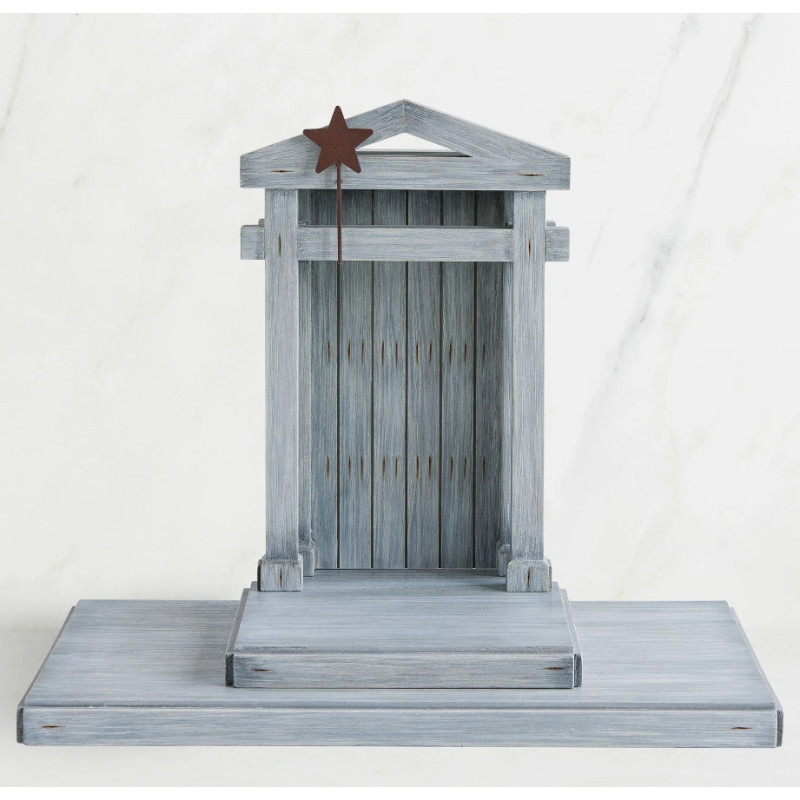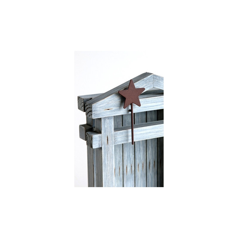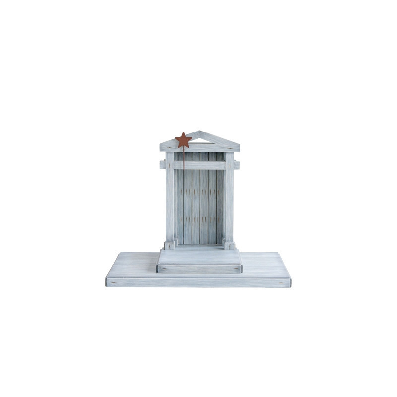 Réalisée en résine de haute qualité et peinte à la main pour imiter la texture du bois, l’étable reproduit fidèlement l’ambiance d’une grange rustique. L’étoile métallique fixée au sommet évoque l’étoile de Bethléem, guide spirituel de la Nativité.