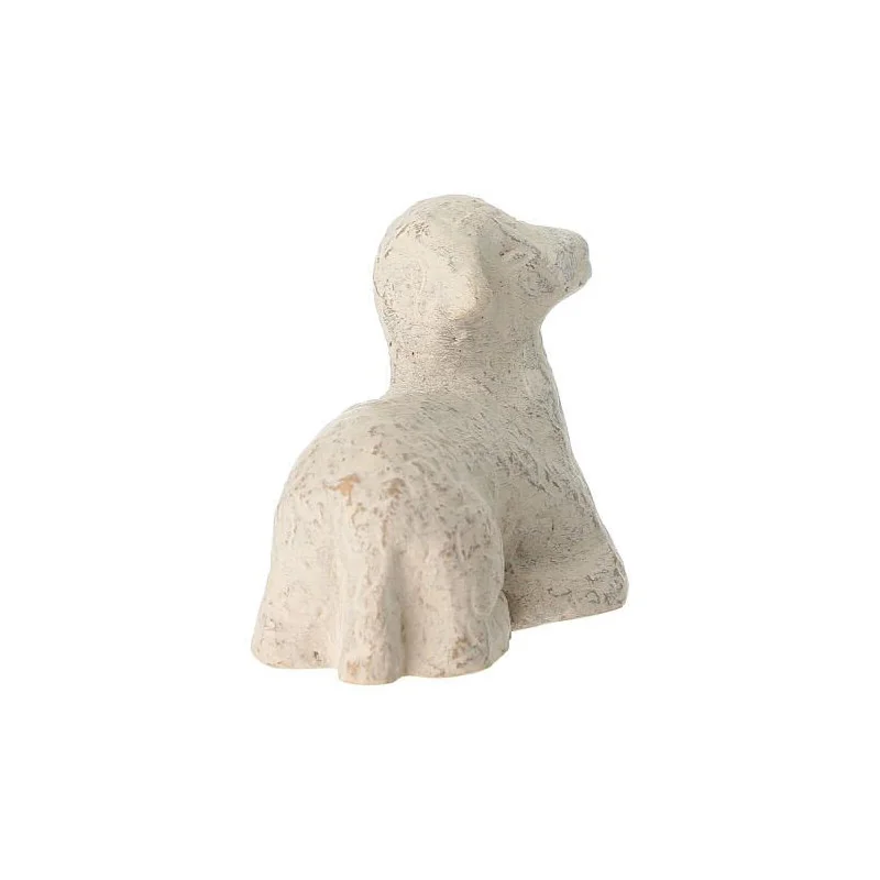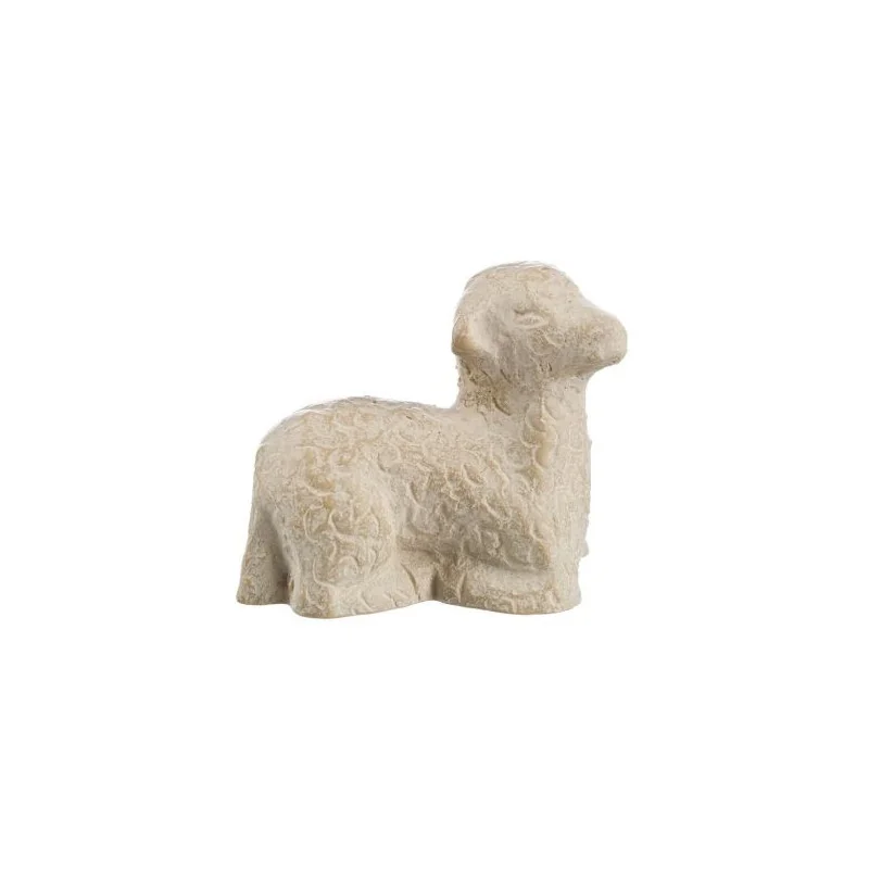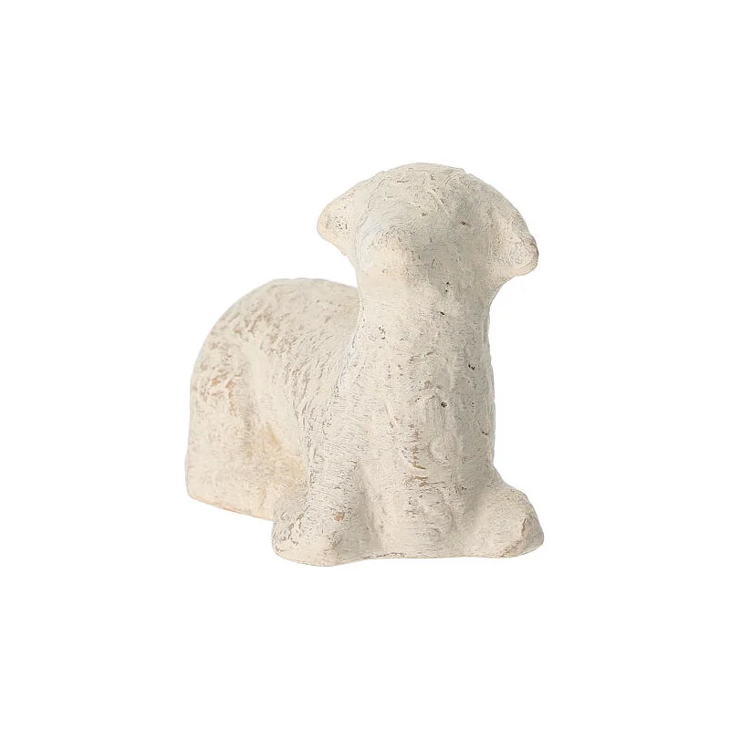 Santon "mouton" de la crèche des Soeurs de Bethleem, réalisé en pierre naturelle : la dolomie. Les finitions blanches et dorées sont faites à la main par des soeurs. Sa taille est de 4cm.