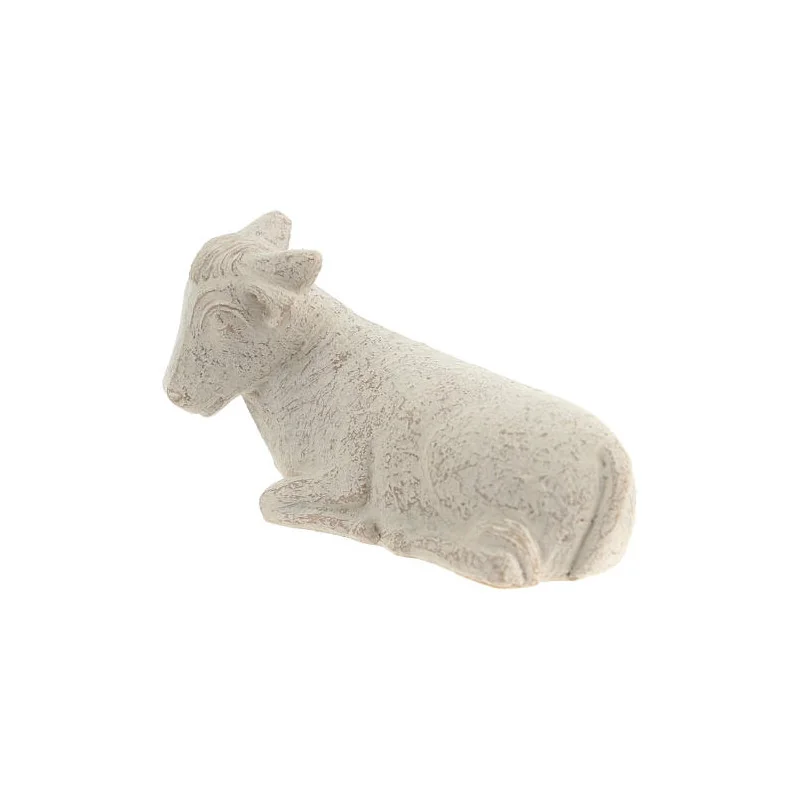 Santon "boeuf" de la crèche des Soeurs de Bethleem, réalisé en pierre naturelle : la dolomie. Les finitions blanches et dorées sont faites à la main par des soeurs. Sa taille est de 6,5cm.