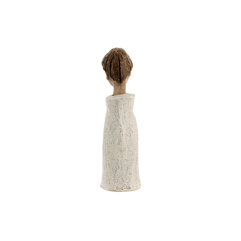 Les finitions blanches et dorées sont faites à la main par des soeurs. Sa taille est de 14cm.