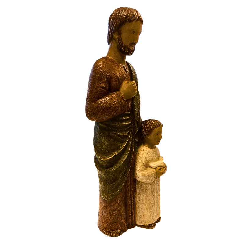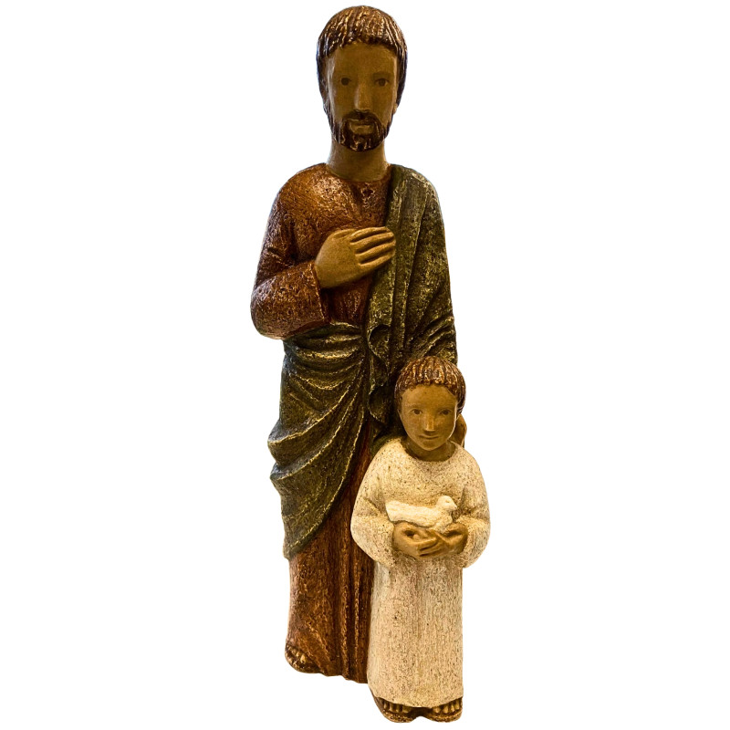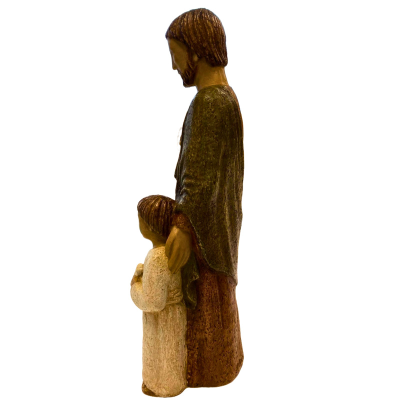 Cette magnifique sculpture met en scène Saint Joseph tenant tendrement l'Enfant Jésus, avec une colombe symbolique présente à leurs côtés. Réalisée en dolomie de haute qualité, cette pièce artistique capture l'essence de la sainteté et de l'amour parental. Les finitions polychromes en rouge et vert ajoutent une touche vibrante à cette œuvre, soulignant la spiritualité et l'harmonie qui émanent de cette représentation sacrée..