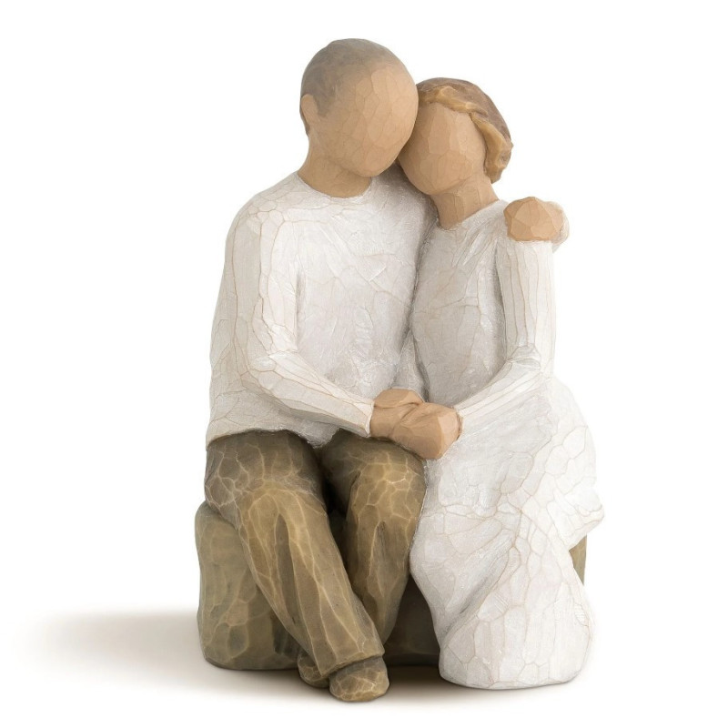 La figurine « Anniversaire de Mariage » de la collection Willow Tree, conçue par l'artiste Susan Lordi, incarne l'amour profond et la complicité qui se renforcent avec le temps. Cette sculpture représente un couple assis côte à côte sur un banc, se tenant tendrement la main, symbolisant l'engagement et la tendresse partagés au fil des années.