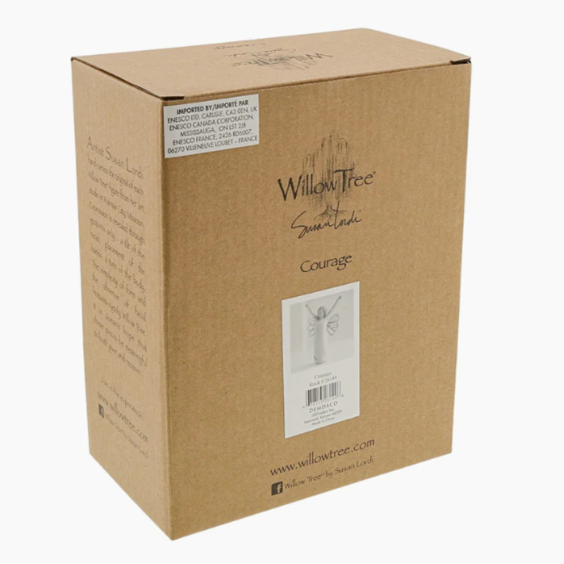 La figurine « Ange du Courage » de la collection Willow Tree, conçue par l'artiste Susan Lordi, incarne la force et la détermination nécessaires pour surmonter les défis de la vie. Cette sculpture représente un ange debout, vêtu d'une robe crème, les bras levés vers le ciel, symbolisant l'élévation et la bravoure.