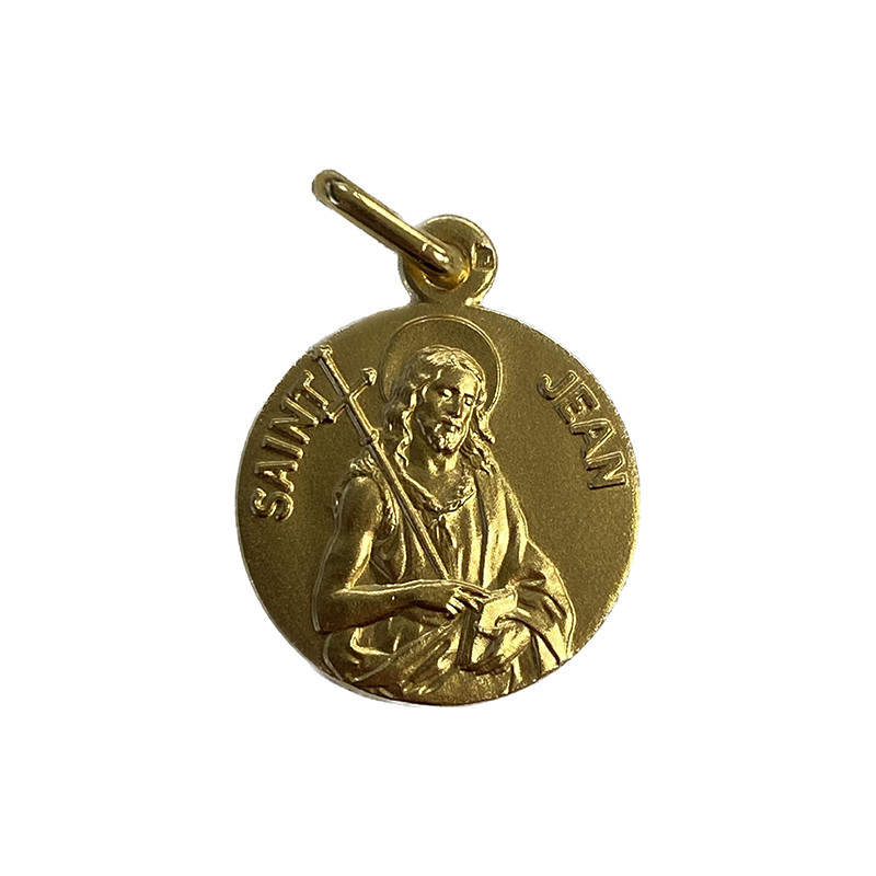 Magnifique médaille de Saint Jean en plaqué or véritable. Cette médaille, fabriquée dans des ateliers en France, mesure 18 mm de diamètre.