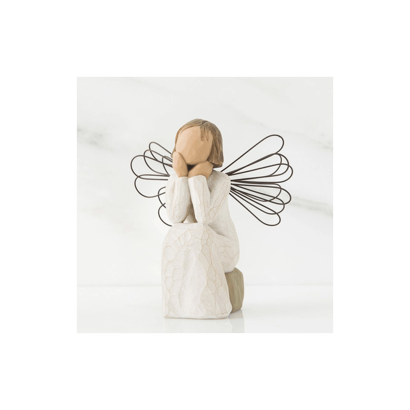 La figurine « Ange de l'Écoute » de la collection Willow Tree, conçue par l'artiste Susan Lordi, incarne la patience et la bienveillance de ceux qui prennent le temps d'écouter. Cette sculpture représente un ange assis, vêtu d'une robe crème, les mains posées sous le menton en signe d'attention, symbolisant l'écoute attentive et le soutien silencieux.