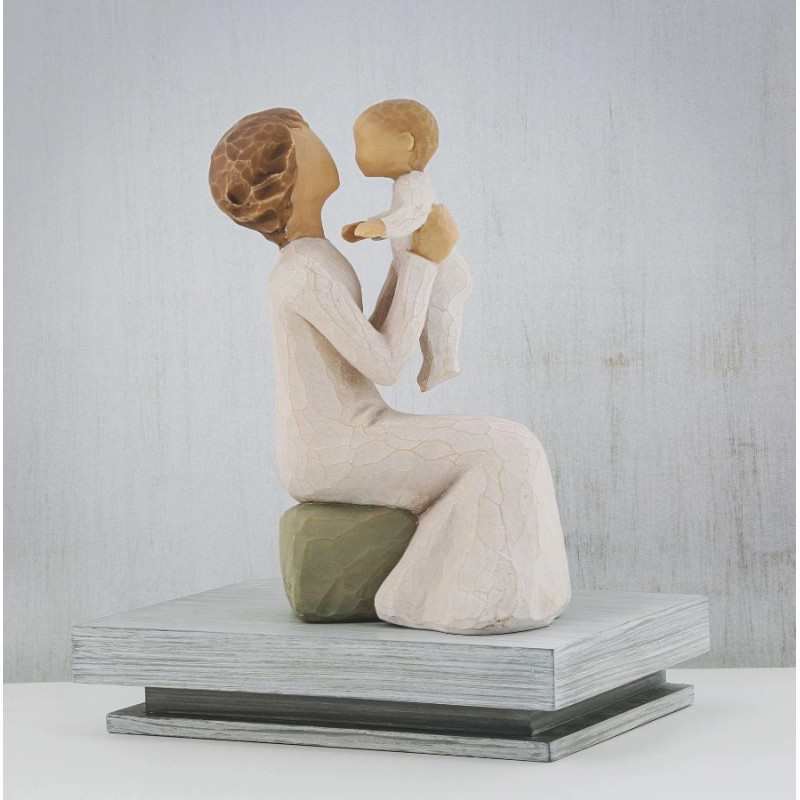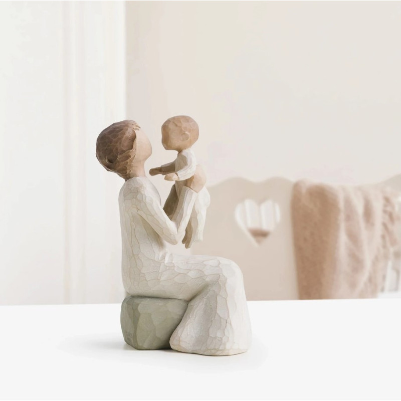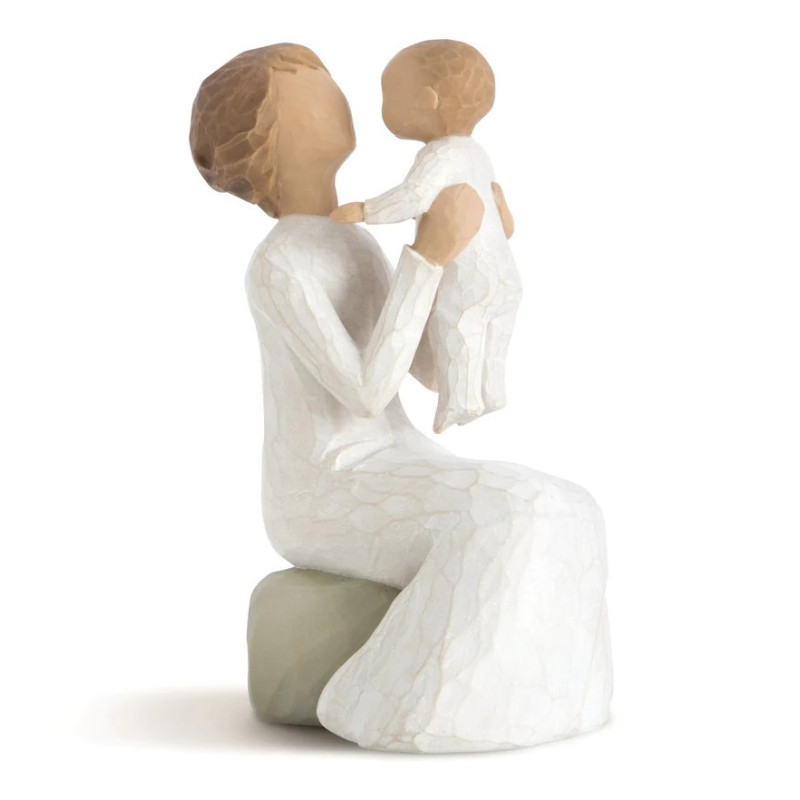 La figurine « Grand-mère » de la collection Willow Tree, conçue par l'artiste Susan Lordi, incarne la tendresse et la complicité entre une grand-mère et son petit-enfant. Cette sculpture représente une femme assise, vêtue d'une robe crème, tenant un bébé dans ses bras, symbolisant l'amour intergénérationnel et la transmission des valeurs familiales.