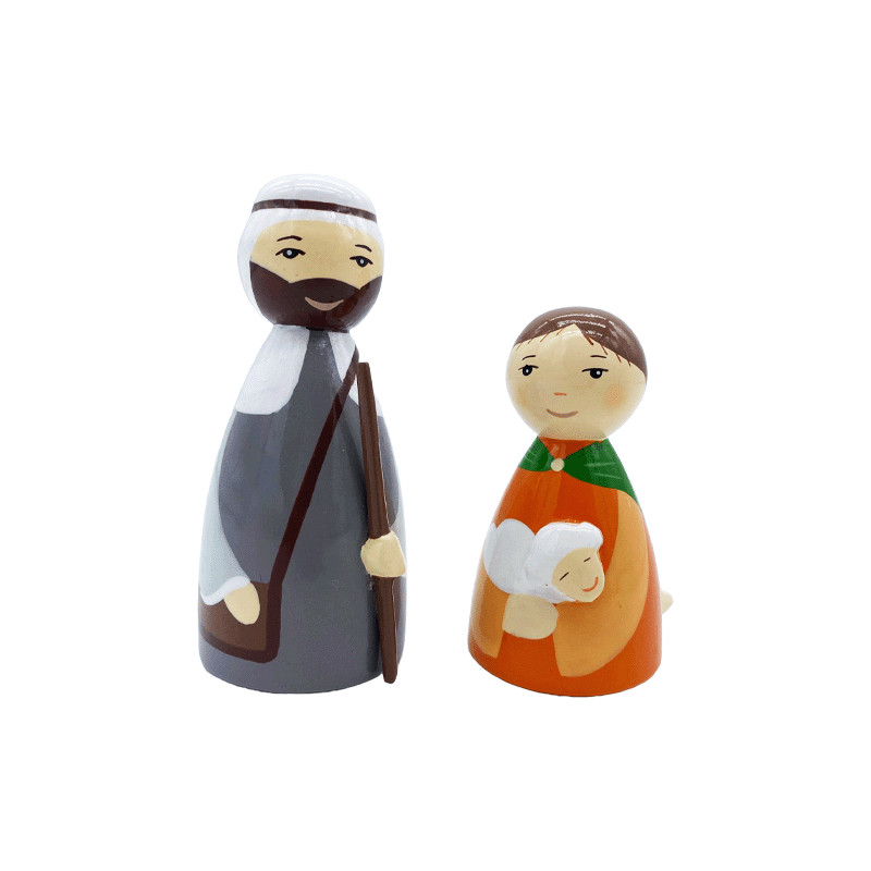 Santons en bois peint achetés pour compléter la crèche de mon petit-fils. Simple et joli. Taille parfaite : 7 à 8,5 cm de haut selon le personnage. Prix un peu élevé toutefois.