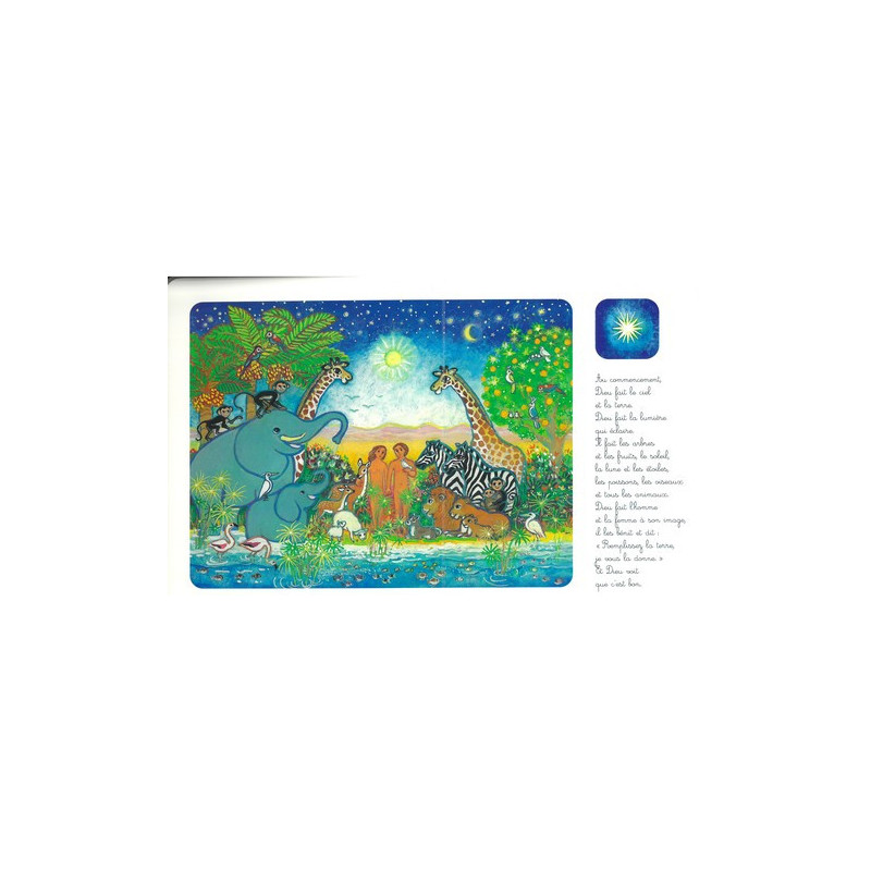 Les dessins de Maïté Roche sont magnifiques et colorés. Les Pagé cartonnées sont très pratiques. Les textes bibliques bien résumés et bien choisis. Tout est adapté pour un tout petit (moins de 3 ans)