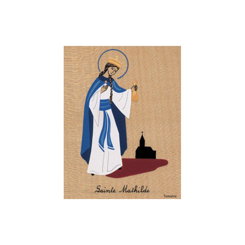 Cadre religieux en bois laminé représentant Sainte Mathilde.