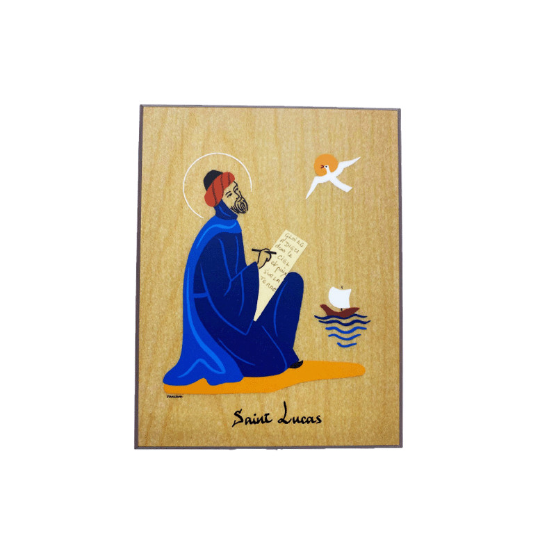 Cadre religieux en bois laminé représentant Saint Lucas