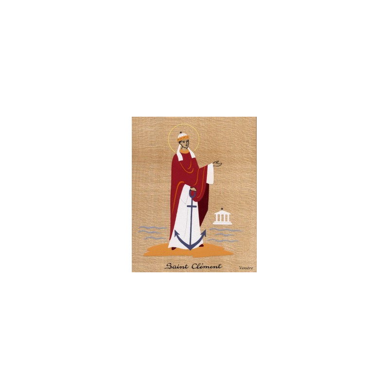 Cadre religieux en bois laminé représentant Saint Clément.