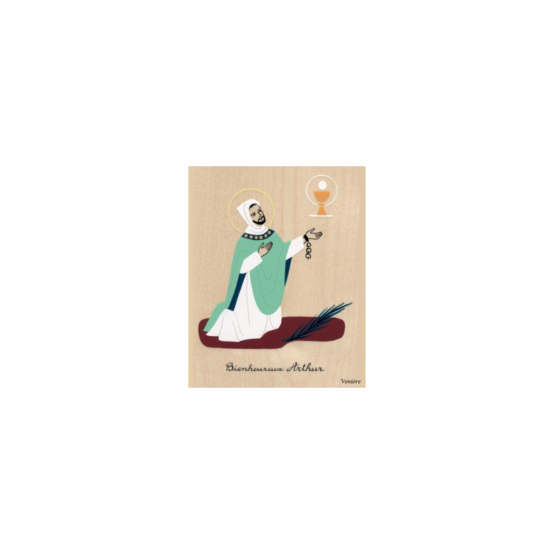 Cadre religieux en bois laminé représentant Saint Arthur.