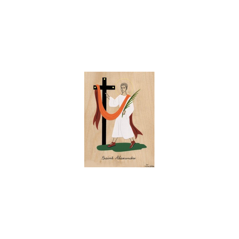 Cadre religieux en bois laminé représentant Saint Alexandre.