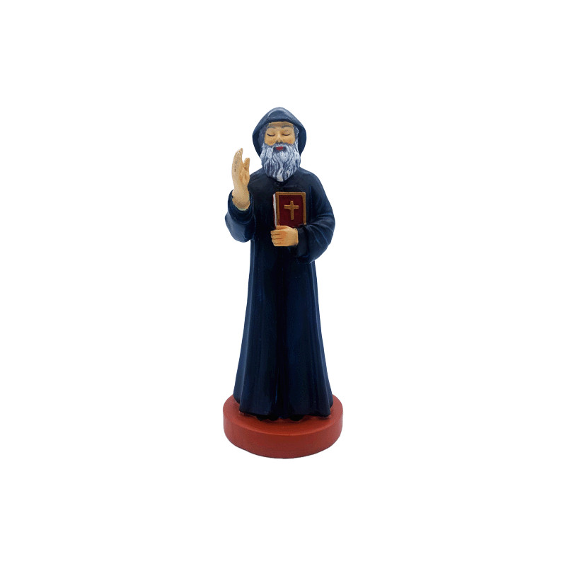 Statue religieuse de Saint charbel en résine décorée. Sa hauteur est de 16 cm. Les finitions sont faites à la main. La résine a l'avantage d'être un materiau beaucoup plus résistant que du platre décoré. Son utilisation est recommandée pour l'intérieur.. La statue religieuse de Saint Charbel est disponible sur notre site.