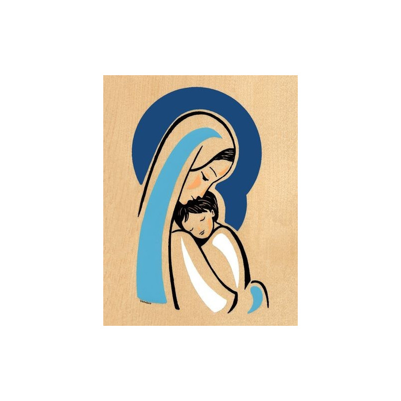 Cadre religieux en bois laminé représentant la Vierge Mère ou Vierge à l'enfant. Le format de ce cadre, dont les tons sont bleus illuminent la Vierge Mère et l'Enfant Jésus est de 10,5x13,5cms. Les Sœurs utilisent des encres longue durée. Le cadre est donc un cadeau de qualité, qui dure dans le temps!
