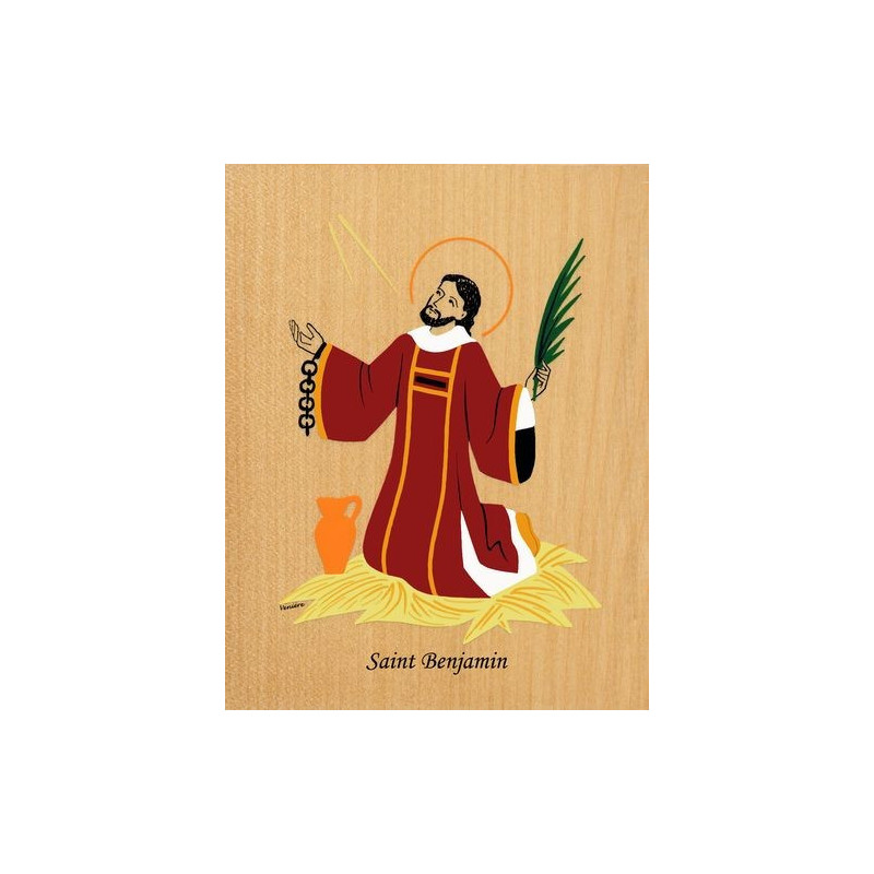 Cadre religieux en bois laminé représentant Saint Benjamin.