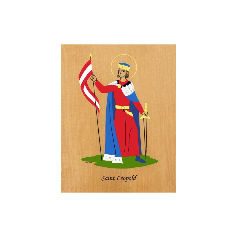Cadre religieux en bois laminé représentant Saint Leopold.