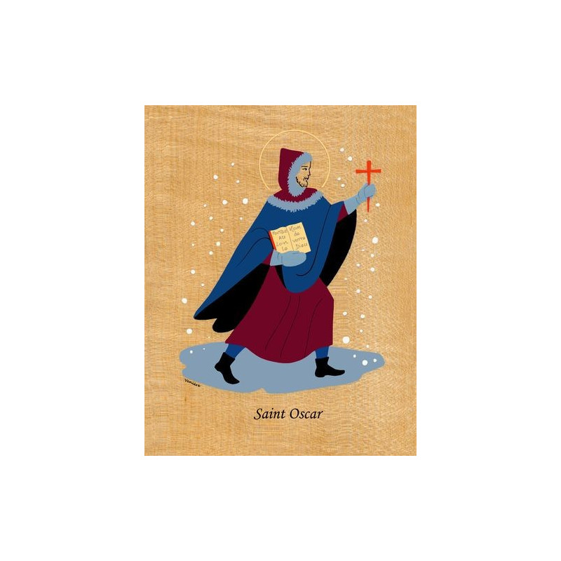Cadre religieux en bois laminé représentant Saint Oscar.
