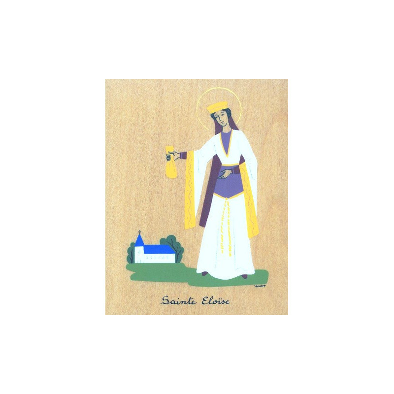 Cadre religieux en bois laminé représentant Sainte Eloïse.