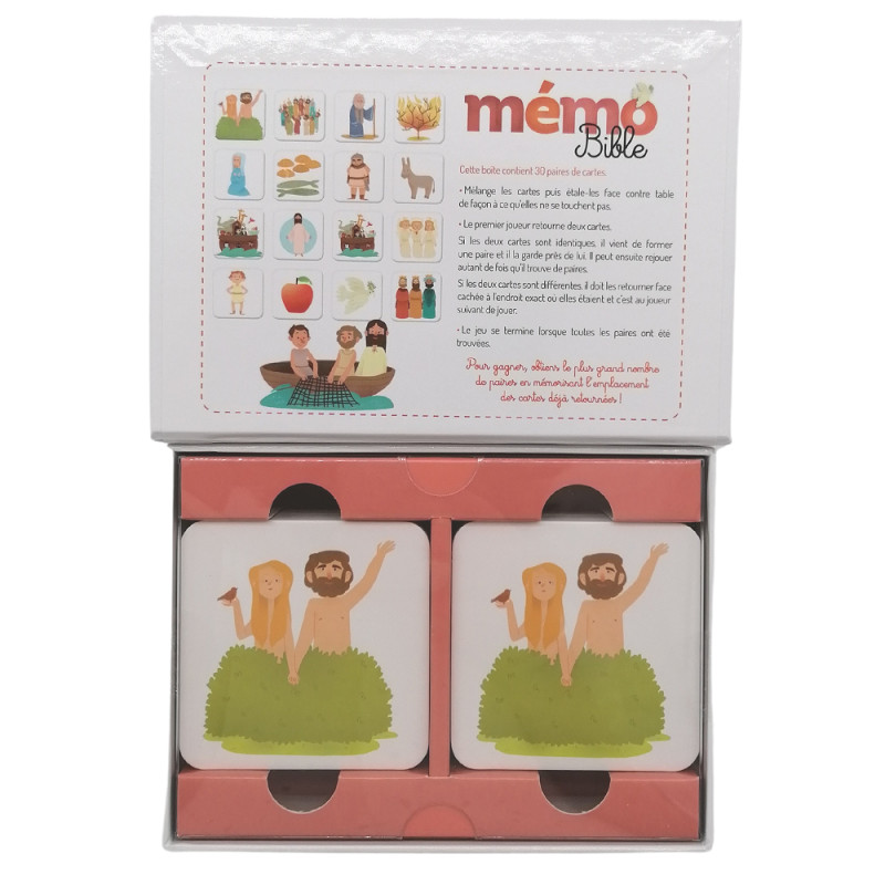 Ce "Mémo Bible" vous permettra de jouer avec les plus jeunes en approfondissant l'histoire de la Bible de maniètre très ludique.