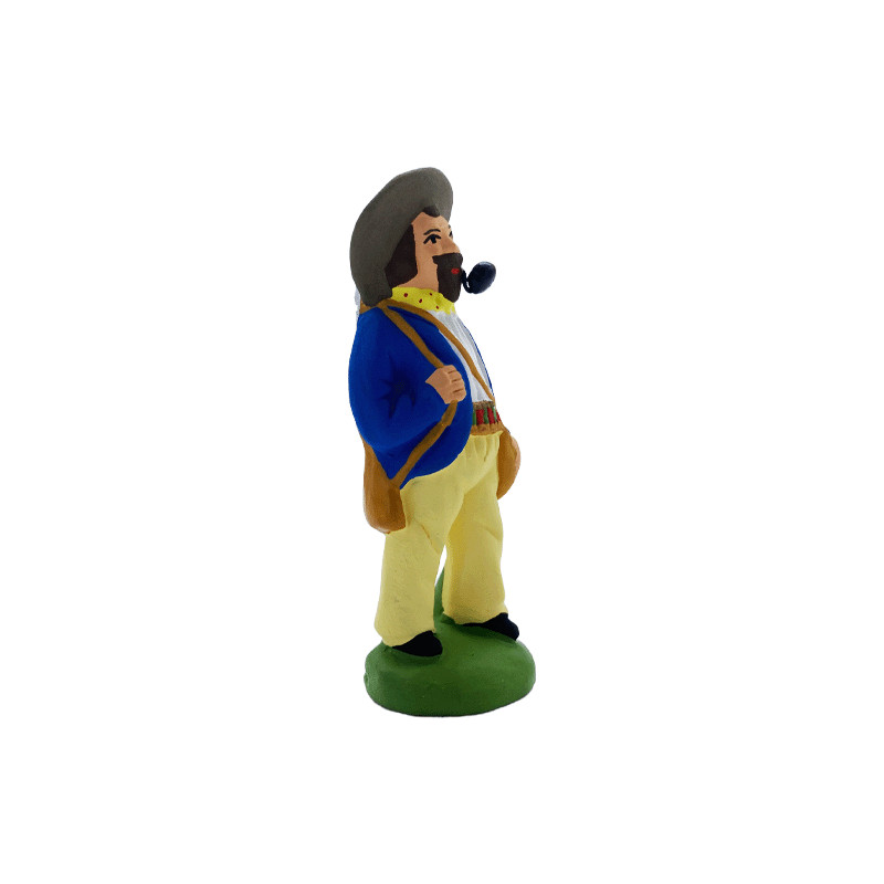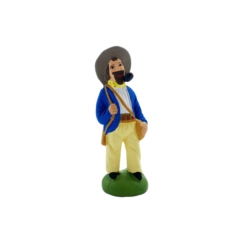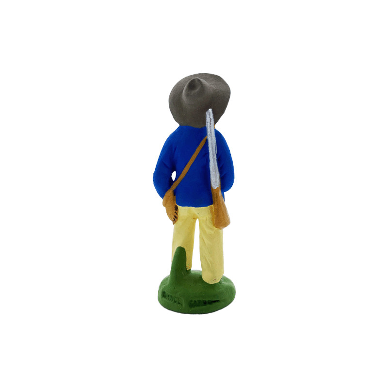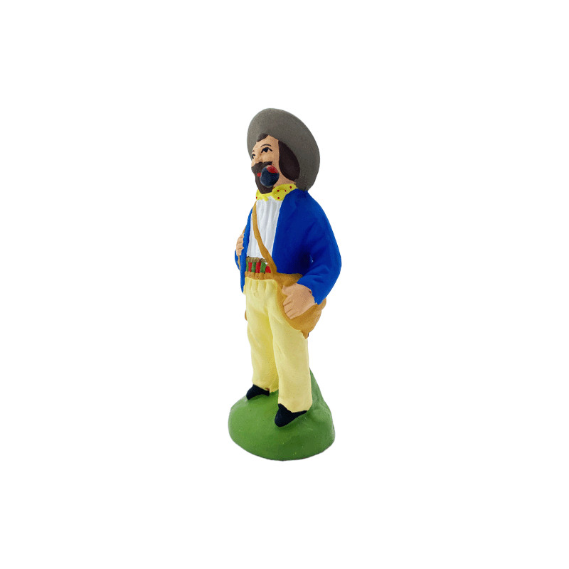 Marius - Santon Marcel Carbonel - Taille 2 (7cm). Personnage typiquement marseillais, certainement inspiré du héros d'Alphonse Daudet, Tartarin de Tarascon. Il prend la vie avec insouciance. Particulièrement vantard, ile ne se prive pas de raconter des histoires le faisant toujours paraitre à son avantage. Portant fusil, cartouchière et carnier, peut-etre est-il un bon braconnier?
