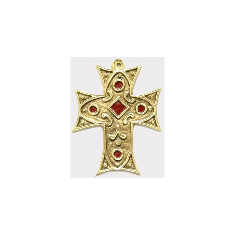 Splendide croix en bronze émaillée. Les emaux de cette croix sont bleues ou turquoises et fabriqués en France par un artisan. La taille de cette croix en bronze véritable, émaillée bleue est de 11.5 cms.