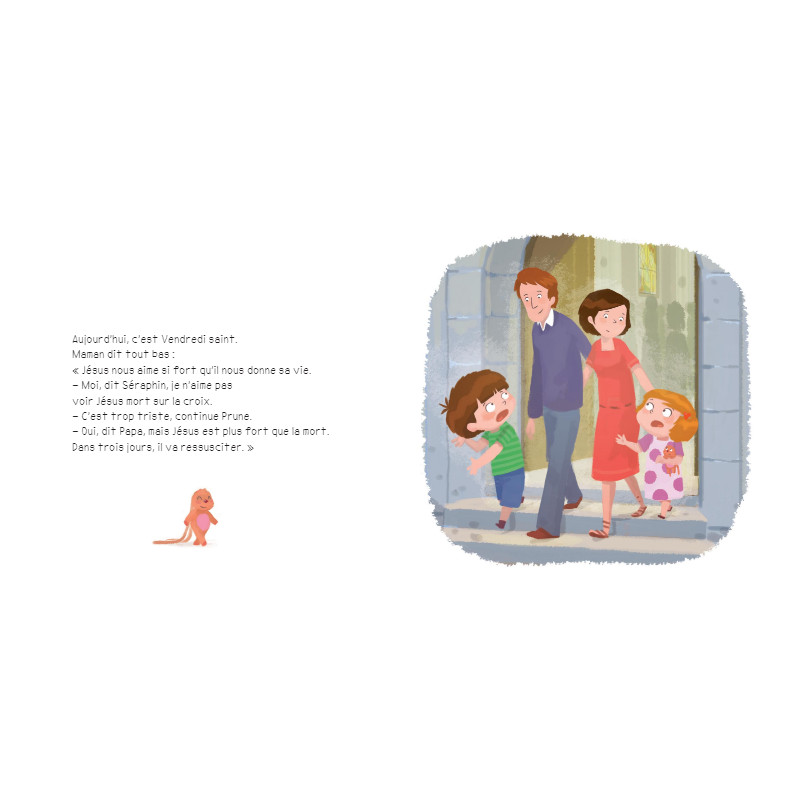 Prune et Seraphin fêtent Pâques" - Edition Mame.Le livre "Prune et Seraphin fêtent Pâques", raconte les aventures de deux petits héros chrétiens droles et amusants. Les histoires mettent en scène tout ce que les parents et la famille souhaitent transmettre aux enfants. Le livre "Prune et Seraphin fêtent Pâques" est un petit livre idéal pour initier les jeunes enfants à l'éveil à la foi.C'est bientôt Pâques. Prune et Séraphin vont à la veillée pascale. Le Dimanche matin, les cloches sont passées! Jésus est réssuscité... Alléluia ! "Prune et Seraphin vfêtent Pâques" est une nouveauté de la collection "Prune et Séraphine" qui comporte également 8 autres titres, disponibles sur notre site.