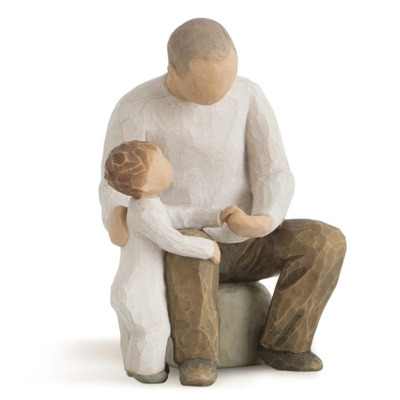 La figurine « Grand-Père (Grandfather) » de la collection Willow Tree, conçue par l'artiste Susan Lordi, illustre avec tendresse la relation entre un grand-père et son petit-enfant. Assis, le grand-père tient la main de son petit-fils debout à ses côtés, symbolisant la transmission, la protection et l'amour inconditionnel.
