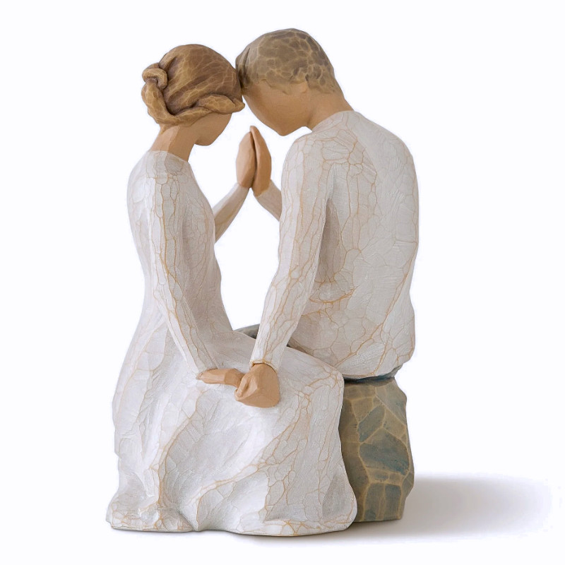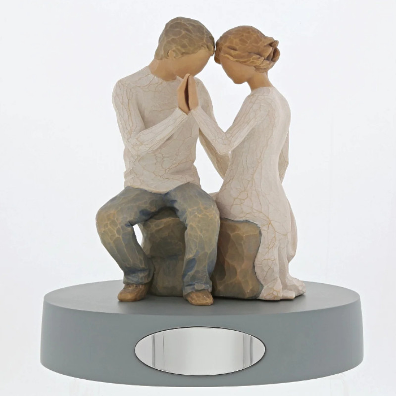 La figurine « Près de toi (Around You) » de la collection Willow Tree, conçue par l'artiste Susan Lordi, capture la tendresse et la connexion d'un jeune couple découvrant l'amour. Assis face à face, leurs têtes et mains se touchant délicatement, ils incarnent l'émotion et l'énergie partagées des débuts amoureux.
