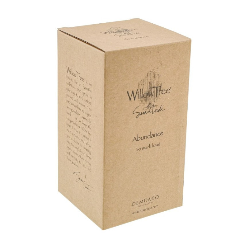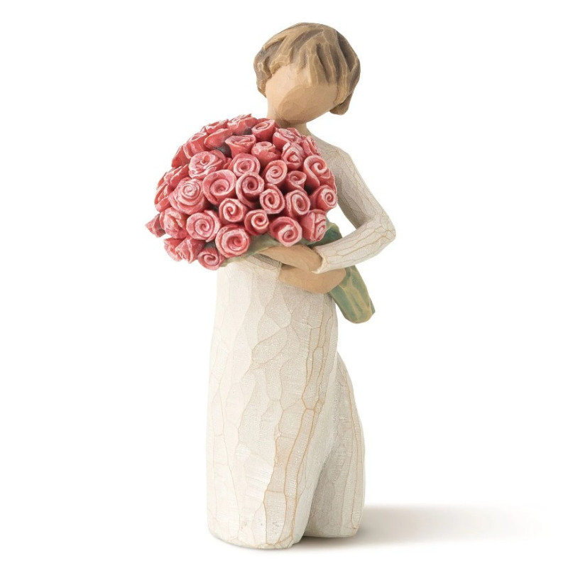 La figurine « Abondance (Abundance) » de la collection Willow Tree, conçue par l'artiste Susan Lordi, incarne l'expression d'un amour profond et généreux. Cette sculpture représente une femme en robe crème tenant un grand bouquet de roses roses, symbolisant la beauté, la gratitude et l'affection.