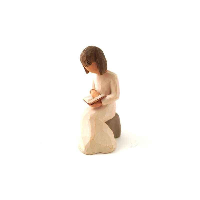 La figurine « Sagesse (Wisdom) » de la collection Willow Tree, conçue par l'artiste Susan Lordi, incarne la passion pour la lecture et la quête de connaissance. Représentant une jeune femme assise sur un rocher gris, absorbée par la lecture d'un livre, cette sculpture évoque la tranquillité et la réflexion profonde.
