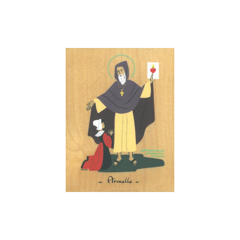 Cadre religieux en bois laminé représentant Sainte Armelle.