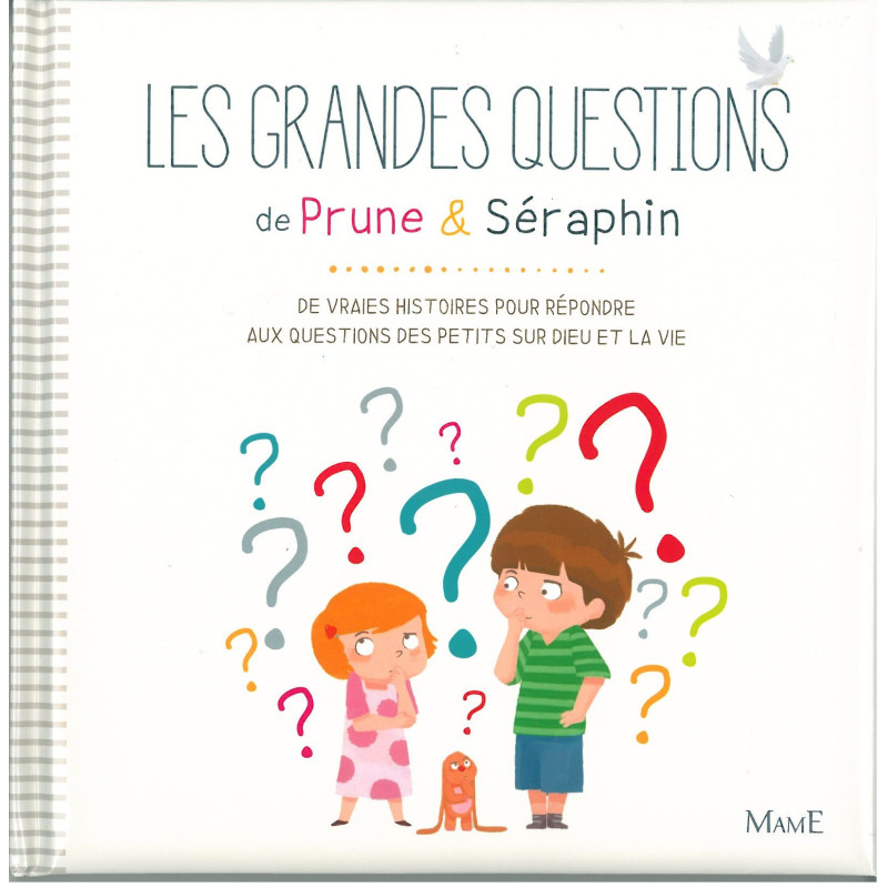 Les Grandes Questions de Prune et Séraphin aux éditions MAME trouvent enfin des réponses ! 18 vraies questions métaphysiques des petits enfants sur Dieu, les origines et le sens de la vie : des questions centrales pour les 3-6 ans. Un concept inédit: les réponses sont données via de vraies histoires, avec des dialogues entre les petits héros et leurs parents.