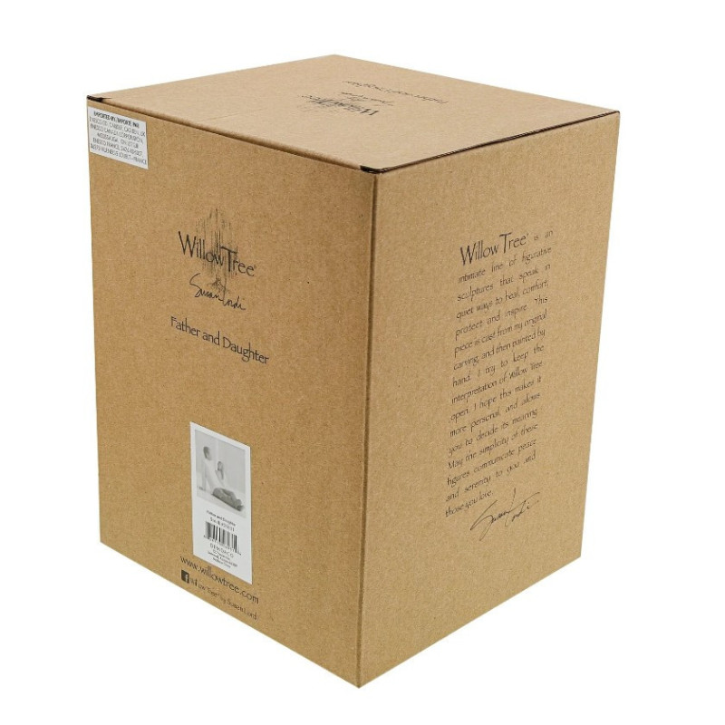 La figurine « Père et Fille » de la collection Willow Tree, créée par l'artiste Susan Lordi, capture avec finesse la complicité entre un père et sa fille. Assis côte à côte, leurs gestes simples et expressifs symbolisent une relation empreinte de tendresse et de confiance.