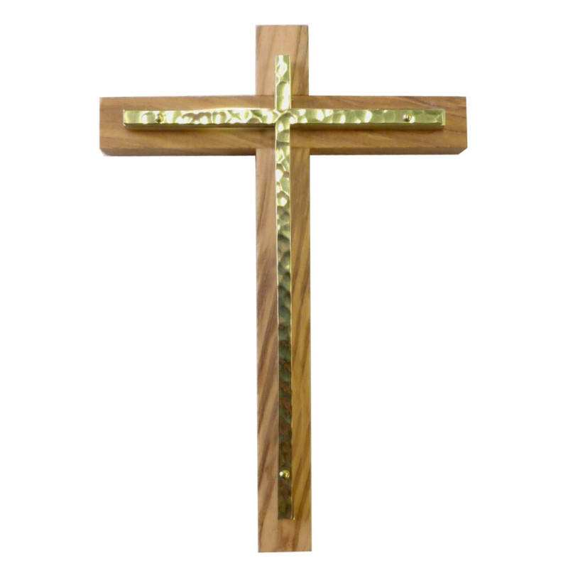 Croix moderne en chêne avec croix dorée joliement façonnée. Un système d'accroche permet de la poser au mur facilement. Joli dans chaque intérieur. Les dimensions de cette croix : 15cm x 10.5cm.