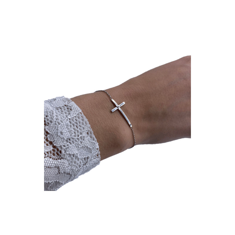 Bracelet Argent avec croix et zircon au centre de la croix.