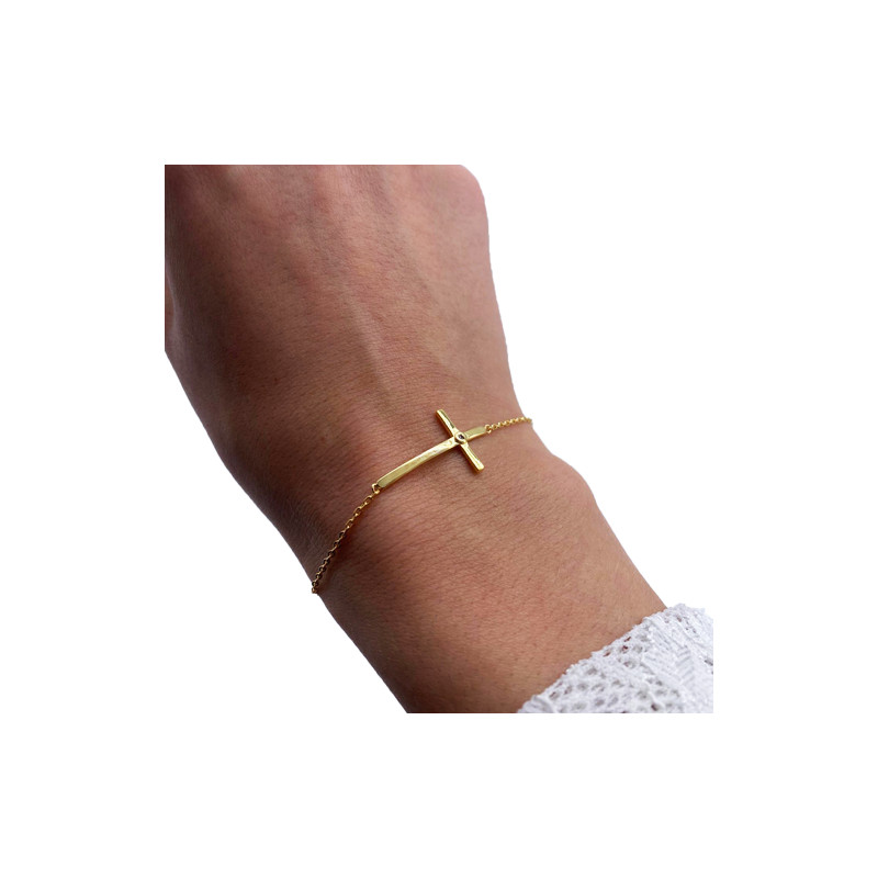 Bracelet Plaqué Or avec croix et zircon au centre de la croix.