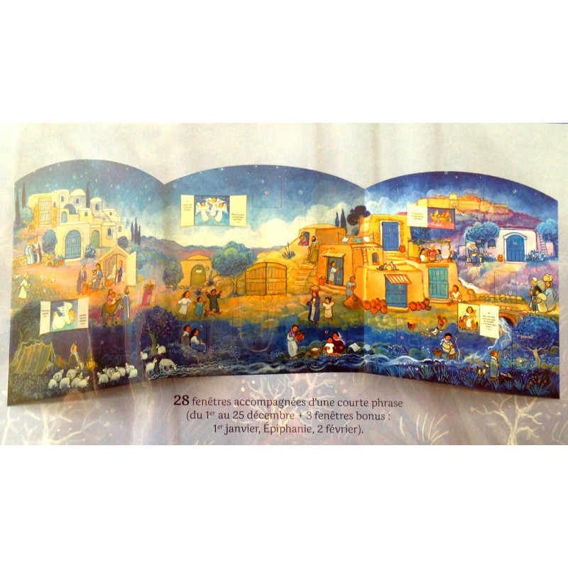 Avec ce beau calendrier de l'Avent, Maïte Roche nous propose un cheminement du coeur. A partir du 1er décembre, en ouvrant une petite fenêtre chaque jour, tout le paysage de Béthleem prend vie : des bergers veillent, des familles ouvrent la porte de leur maison ou de leur coeur, chacun se met en chemin à la rencontre du Seigneur pour entrer dans la joie de Noël. Ce calendrier peut animer un coin prière ou accompagner la crèche familiale.