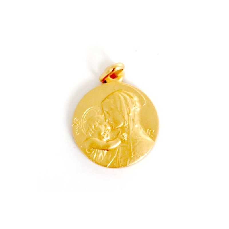 Médaille de baptême en plaqué or. Cette médaille de baptême qui représente la Vierge de Boticelli, a un diamètre de 18mm.