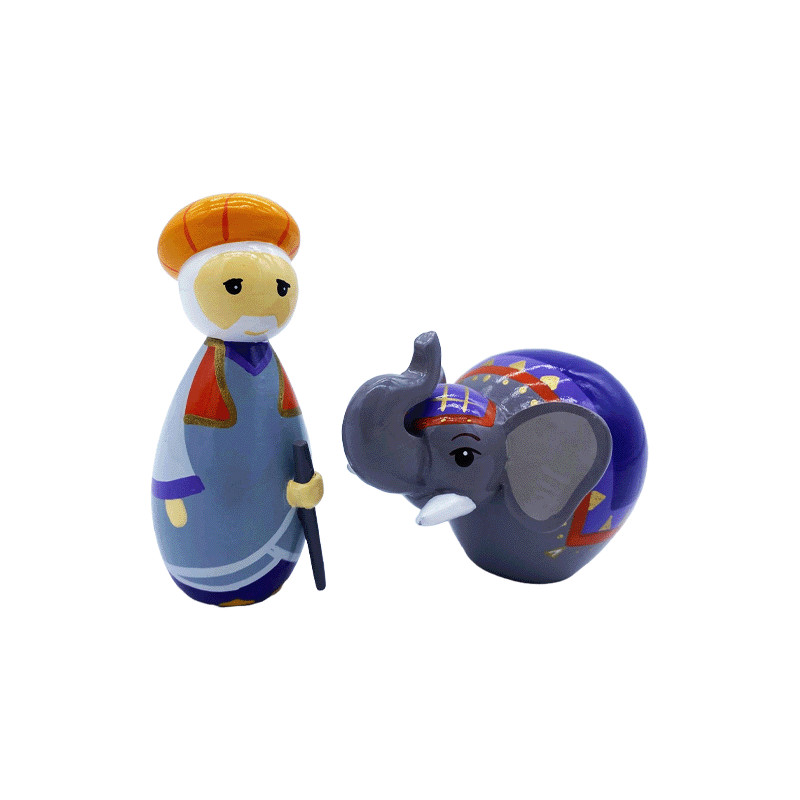 Cornac et éléphant - Crèche de Noël en bois tourné