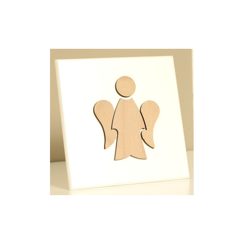 On pourra poser le cadre sur une étagère ou l'accrocher au mur. Les 2 sont possibles. La taille de ce cadre religieux en bois est de 14x14cm. Les éléments de décor sont réalisés par découpe et gravure laser en Europe. Ici, l'ange est en relief, c'est à dire au dessus du cadre. Il s'agit d'un produit de qualité.