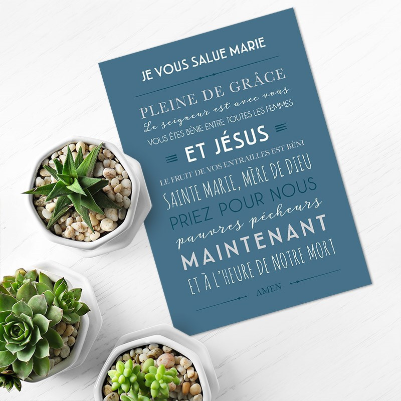 Chouette carte déco avec la prière "Je vous salue Marie".