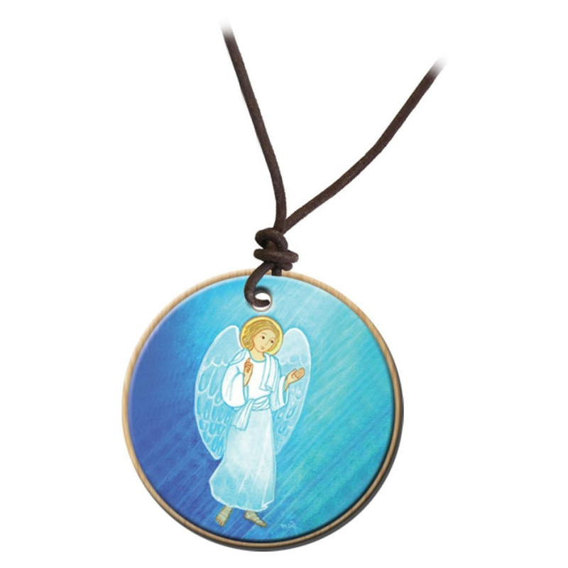 - Pendentif en bois imprimé représentant l'Ange Gardien