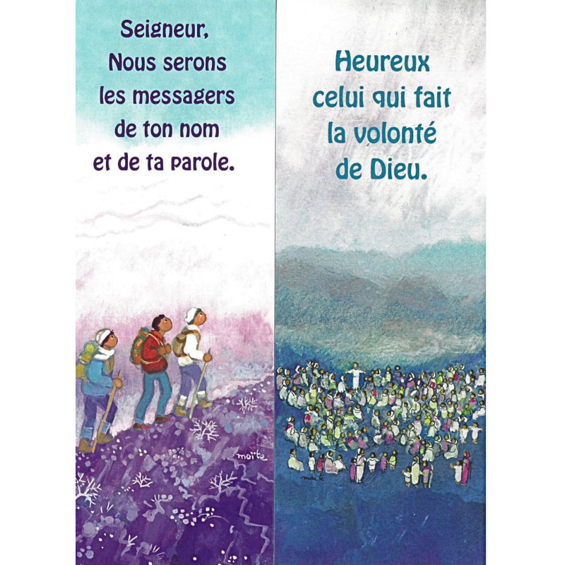 A l'occasion d'une communion, offrez un signet qui rappelera ainsi l'évenement. Retrouvez dans ce lot un ensemble 12 signets religieux, composé de 2 dessins de la célèbre illustratrce Maïte Roche.